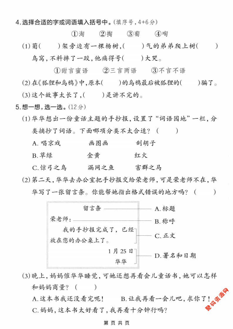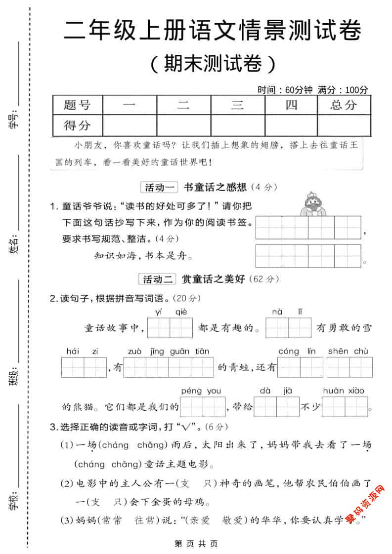 聚码网 二年级 二年级上语文期末情景测试卷6 http://www.appstore168.com/116867.html
