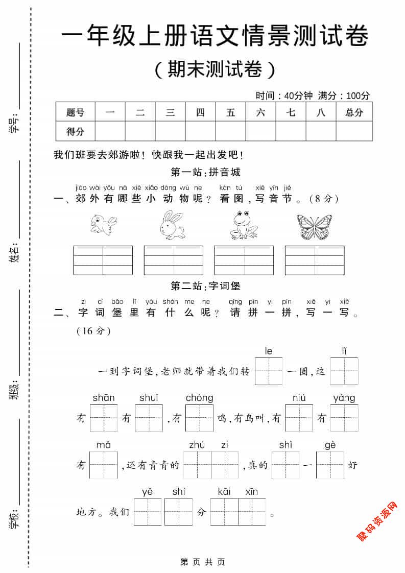 聚码网 一年级 一年级上语文期末测试卷2(5页) http://www.appstore168.com/116870.html