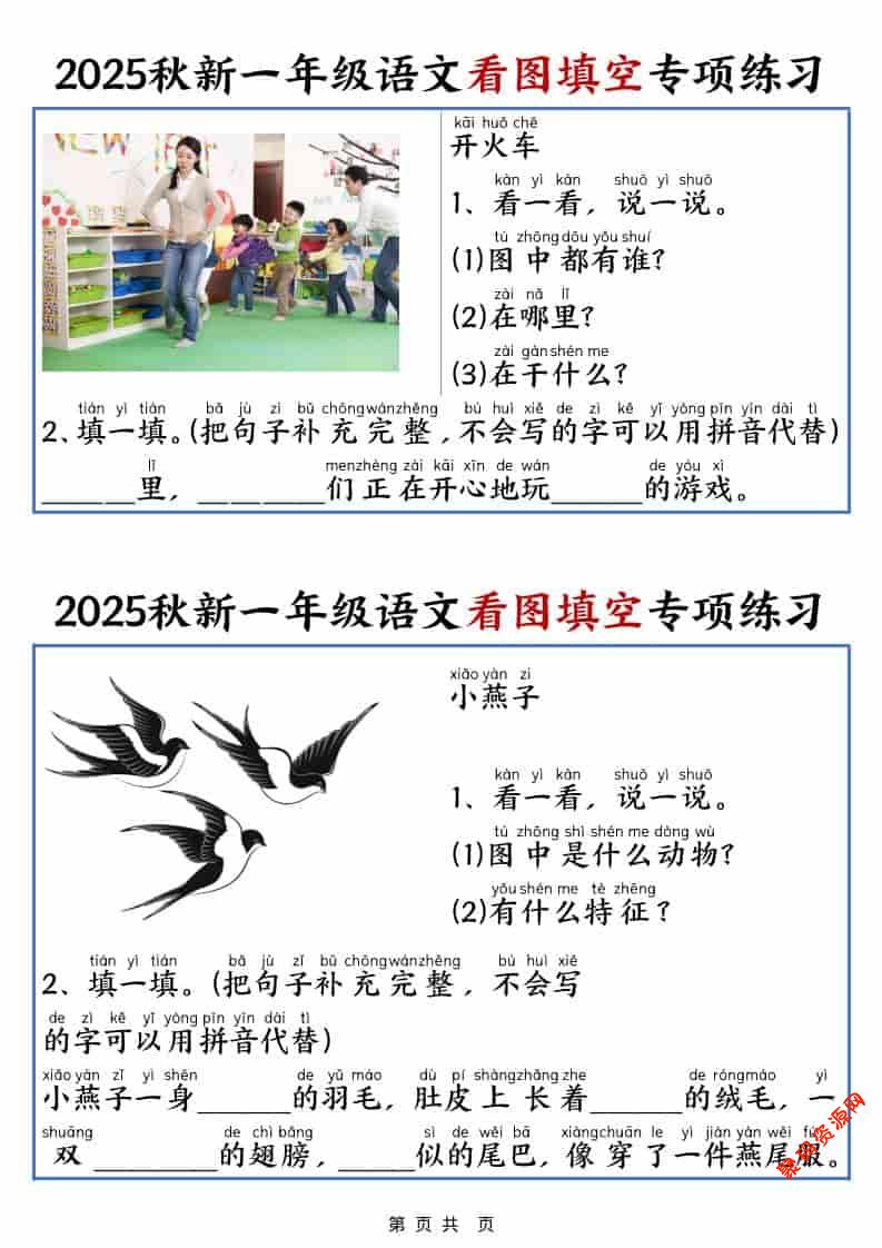 聚码网 一年级 25秋一年级上册语文看图填空专项练习(含答案18页) http://www.appstore168.com/117115.html