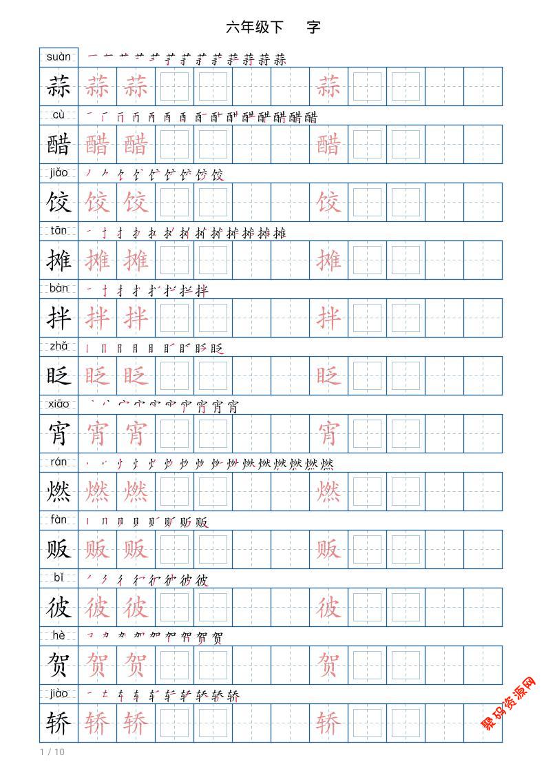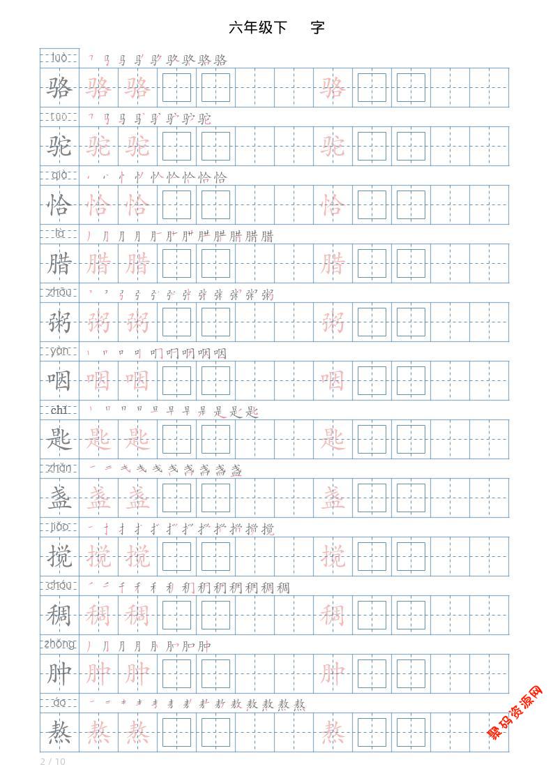 - 六年级下语文生字表120个,字帖10页 2026-02-13