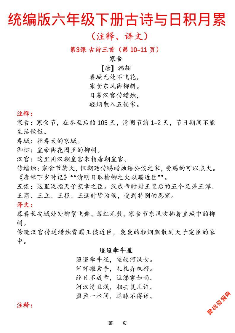 聚码网 六年级 六下语文【古诗与日积月累(注释、译文)】(18页) http://www.appstore168.com/117352.html