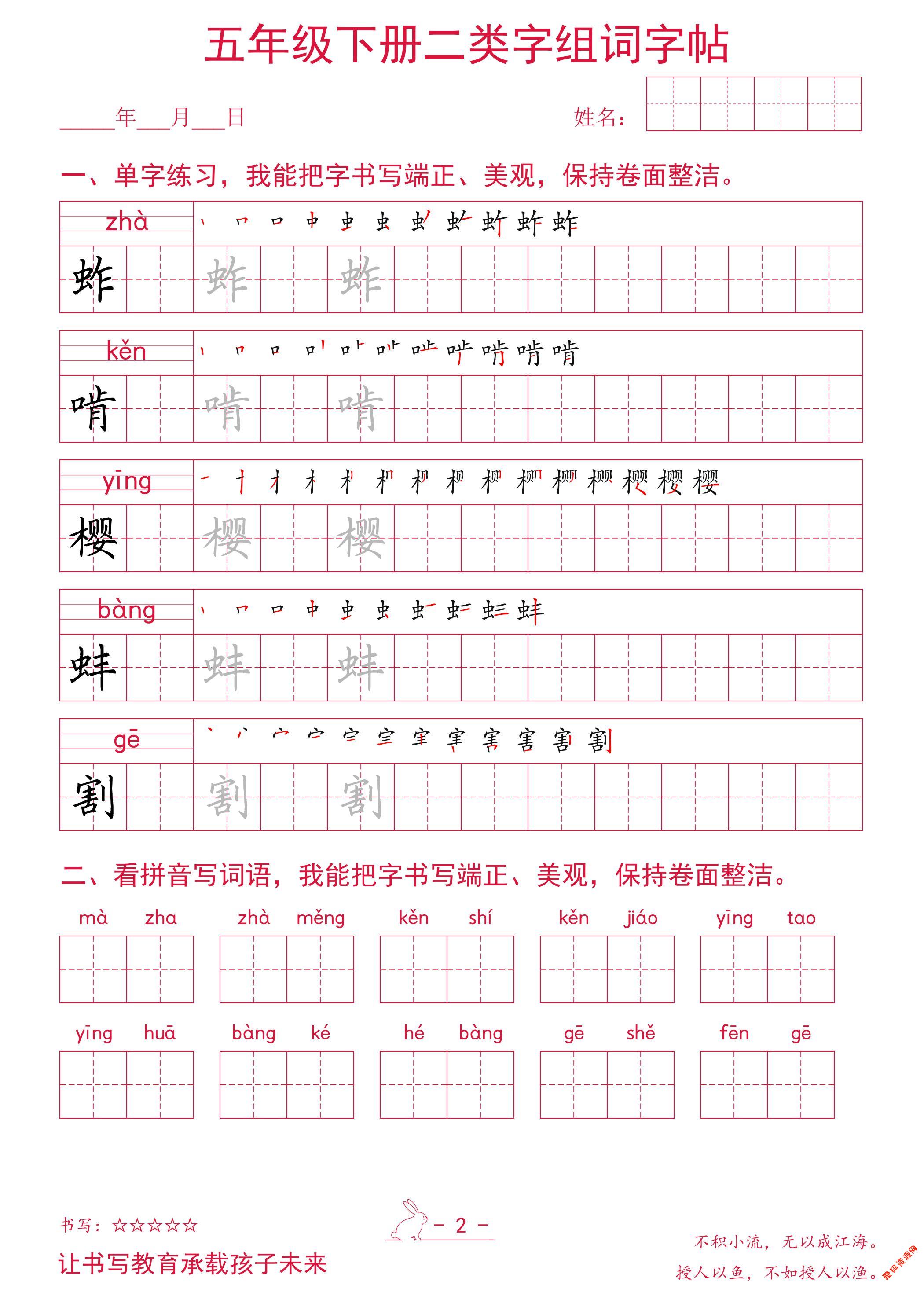 聚码网 五年级 五年级下册语文二类字组词字帖 http://www.appstore168.com/117366.html