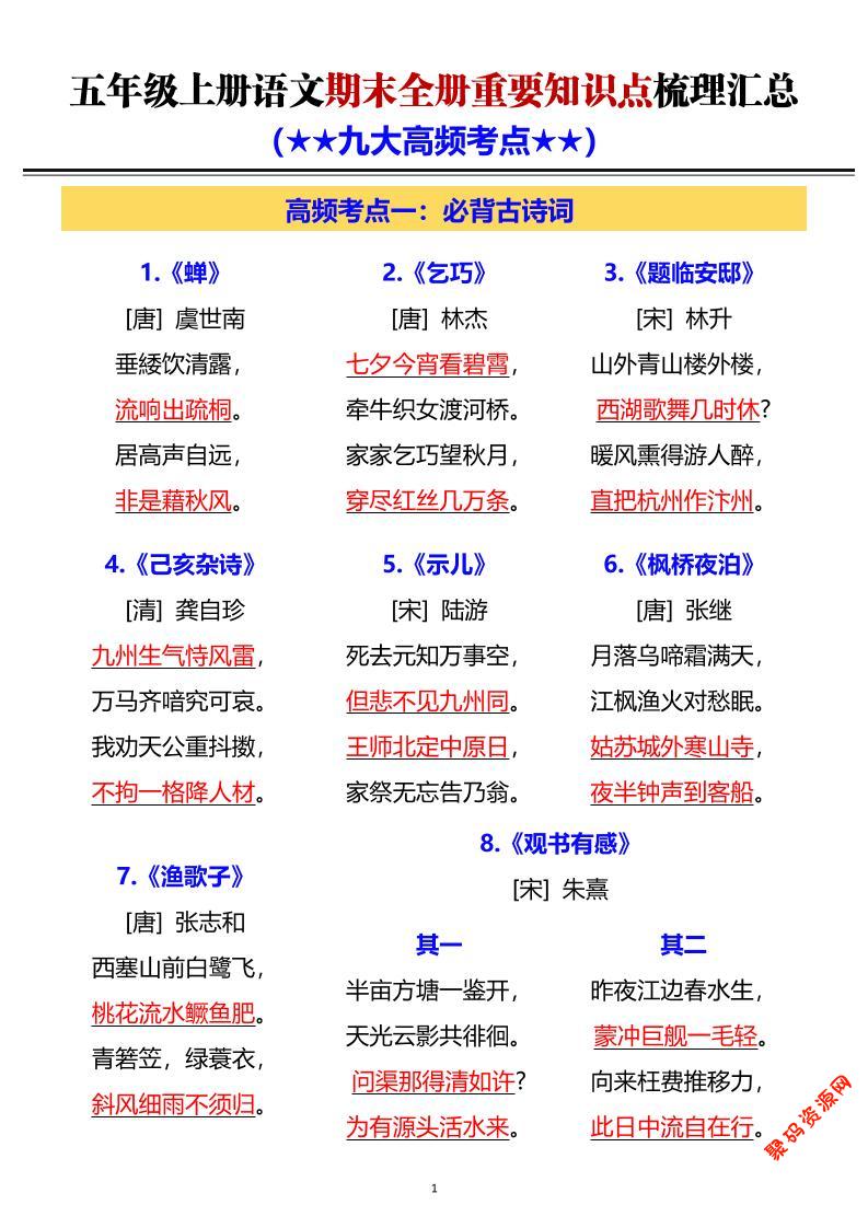 聚码网 五年级 五年级上语文期末全册重要知识点梳理汇总 http://www.appstore168.com/117371.html