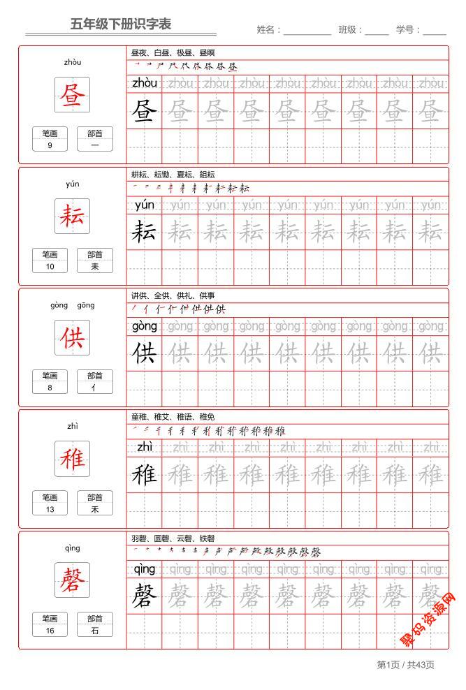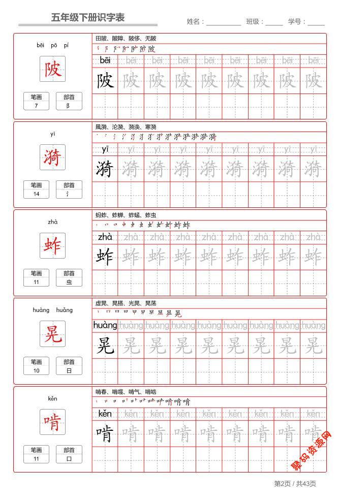 聚码网 五年级 五下语文:识字表字帖(第1套) http://www.appstore168.com/117395.html