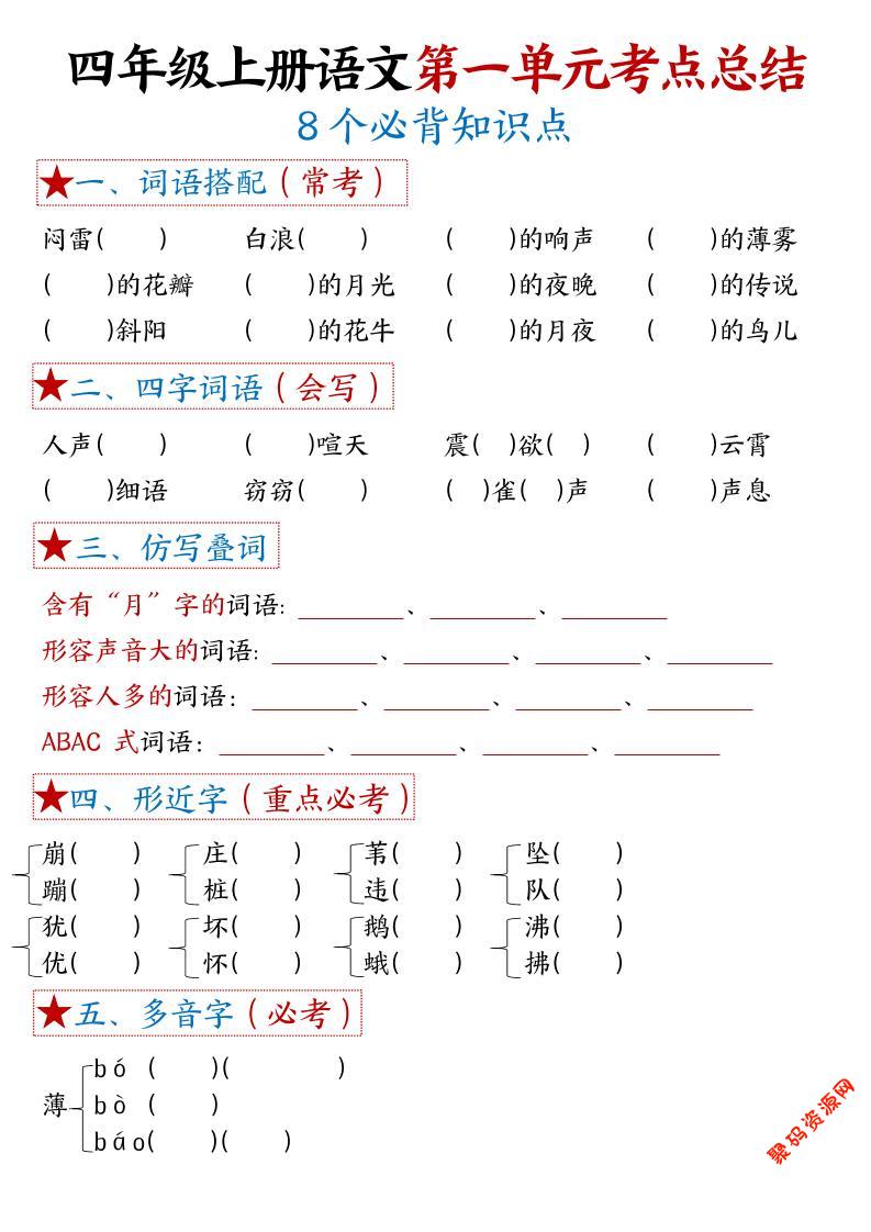 聚码网 四年级 四年级上语文1-8单元考点默写 http://www.appstore168.com/117640.html