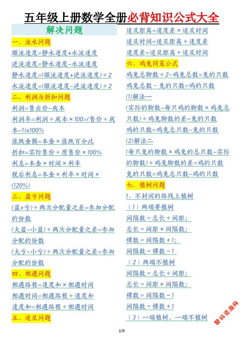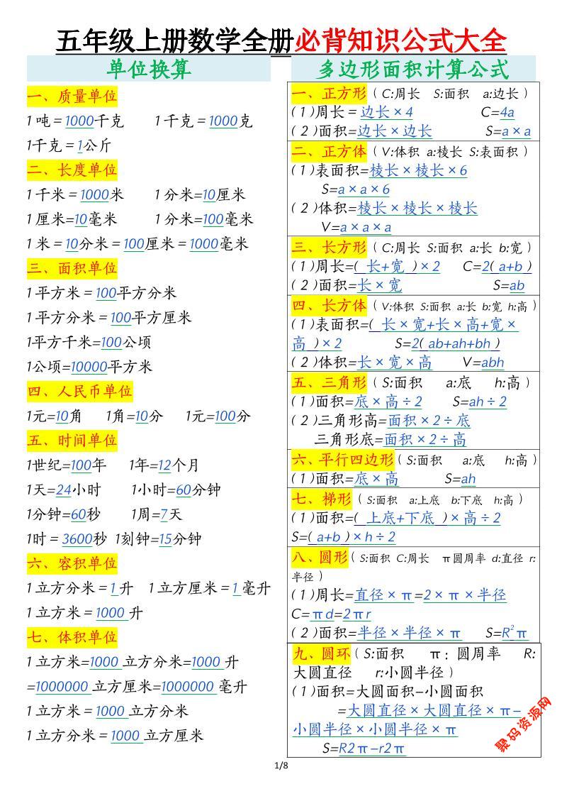 聚码网 五年级 五年级上数学全册必背知识公式大全 http://www.appstore168.com/117712.html