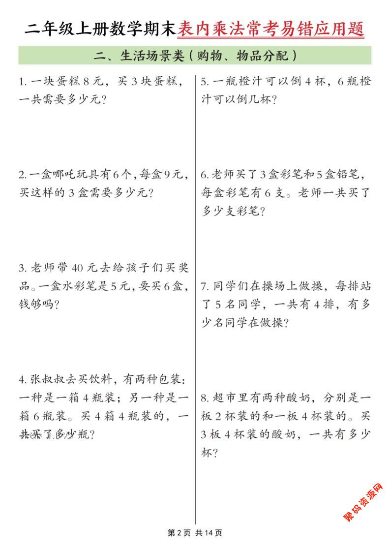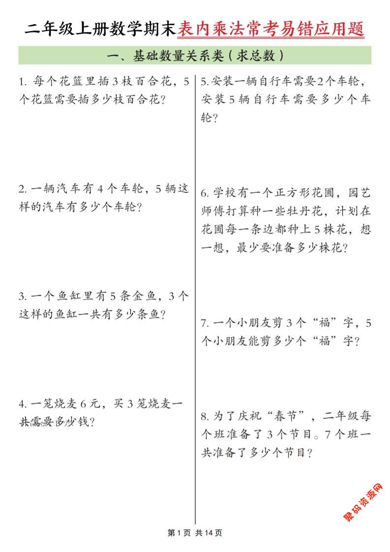 聚码网 二年级 二年级上数学表内乘法常考易错题 http://www.appstore168.com/117717.html