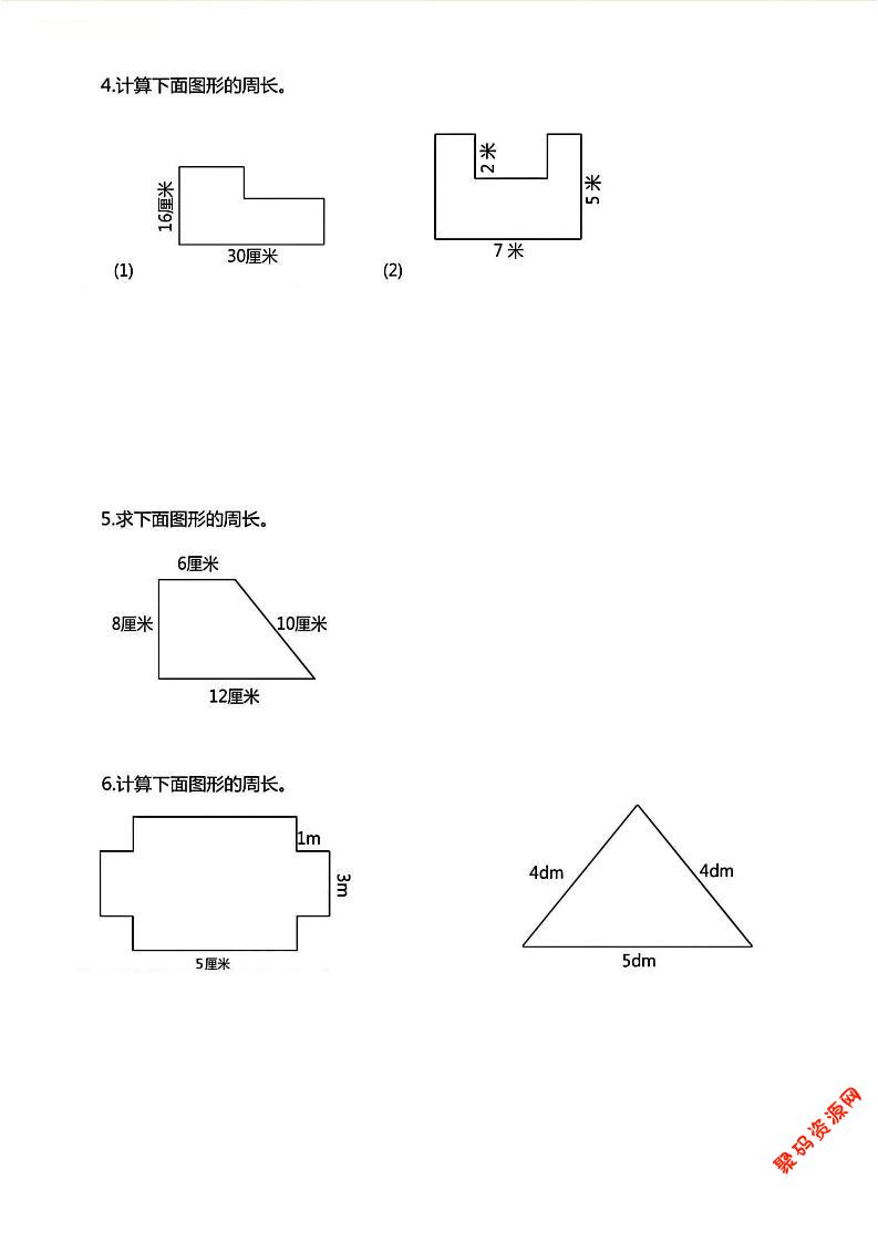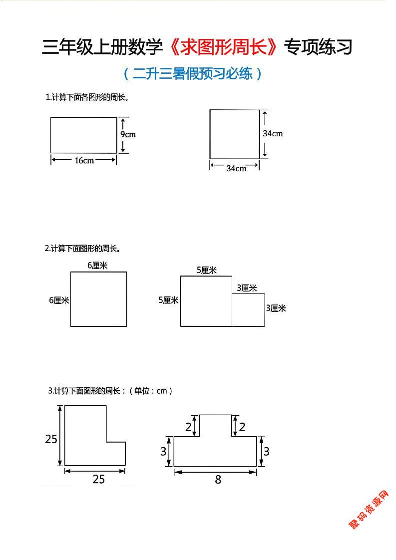 聚码网 三年级 三年级上数学《求图形周长》专项练习 http://www.appstore168.com/117909.html