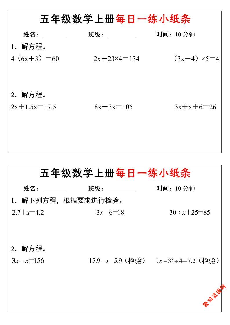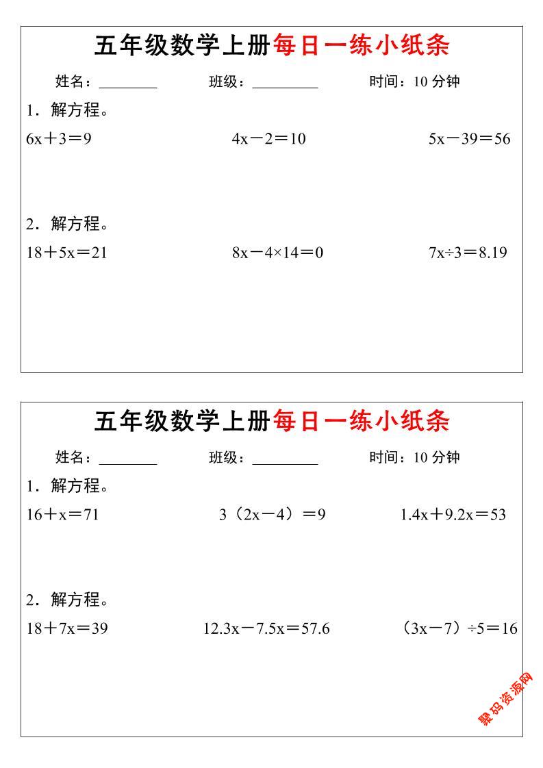 聚码网 五年级 五年级上数学解方程每日一练小纸条 http://www.appstore168.com/117978.html