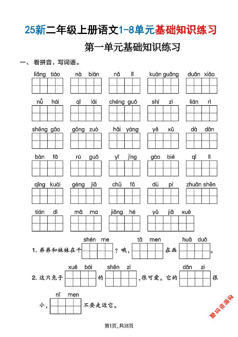 聚码网 二年级 二年级上语文1-8单元基础知识练习 http://www.appstore168.com/117997.html