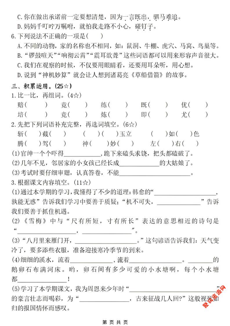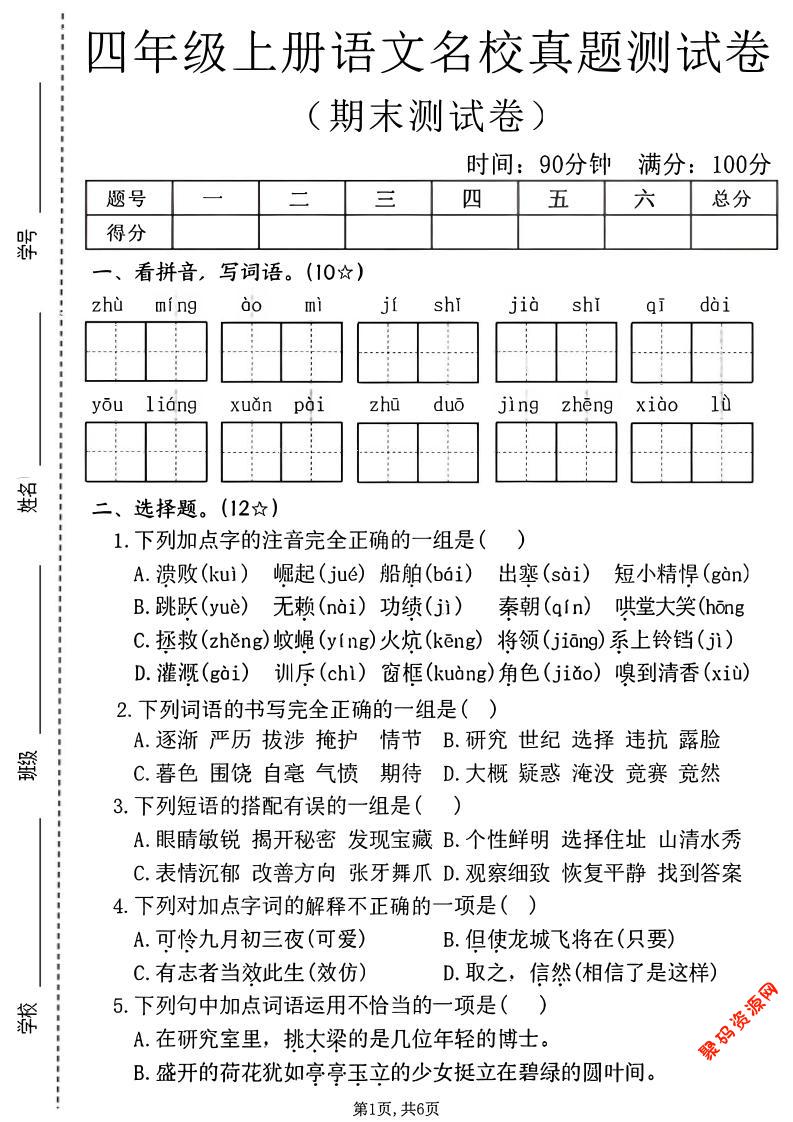 聚码网 四年级 四年级上语文期末名校真题测试卷2 http://www.appstore168.com/118193.html