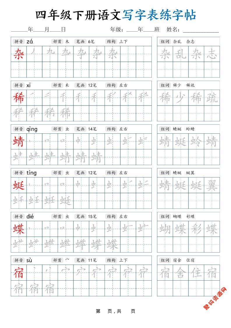 聚码网 四年级 四下语文写字表练字帖(生字拼音笔顺组词)42页 http://www.appstore168.com/118207.html