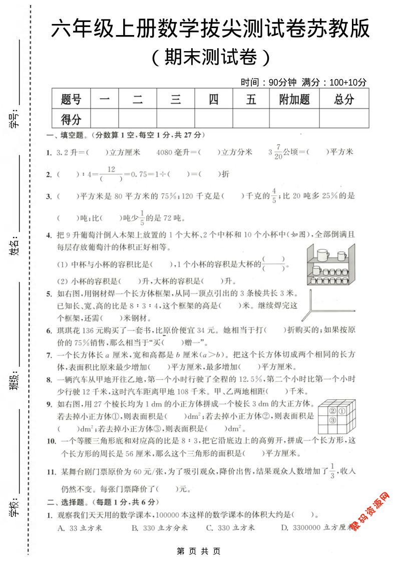 聚码网 六年级 六年级上数学期末拔尖测试卷《苏教版》 http://www.appstore168.com/118222.html