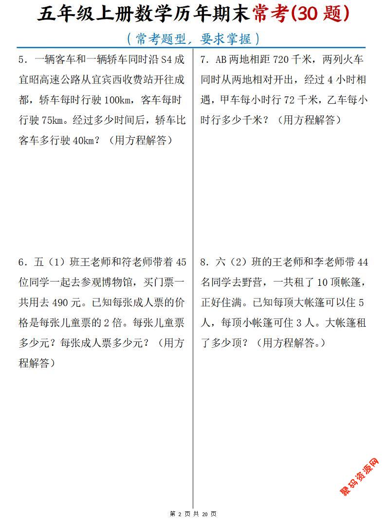 - 五年级下数学常考易错应用题汇总 2026-02-14