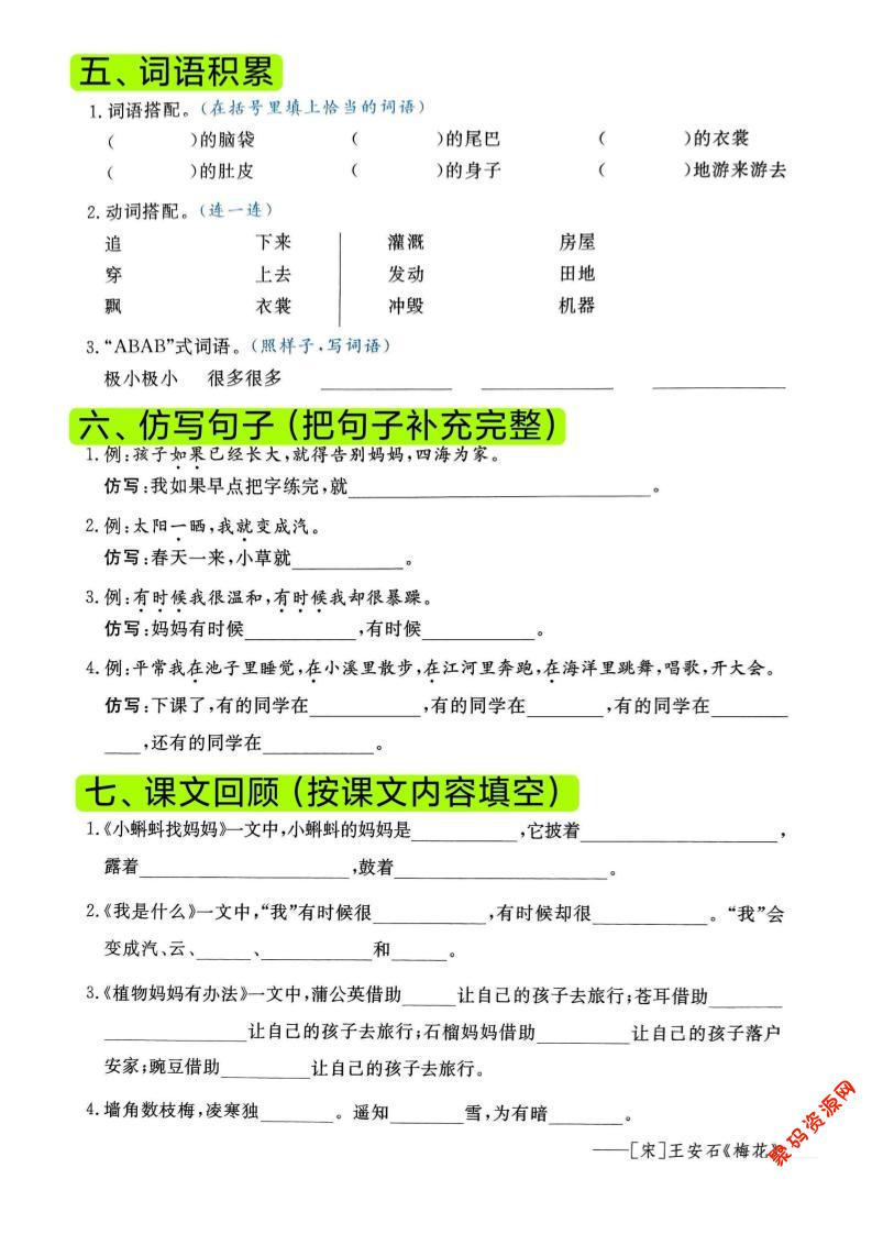 - 26年新二年级语文下寒假作业每日一练21天 2026-02-16