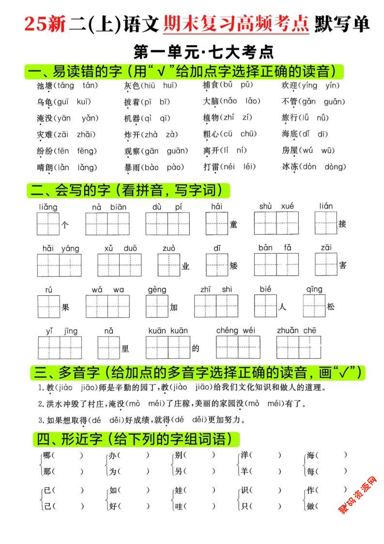 聚码网 二年级 二年级上语文期末复习1-8单元高频考点默写单 http://www.appstore168.com/118248.html