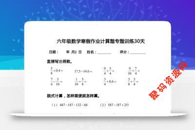 - 三下数学寒假作业每日口算30天 2026-02-17