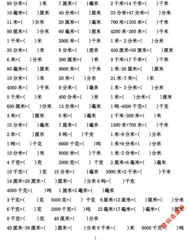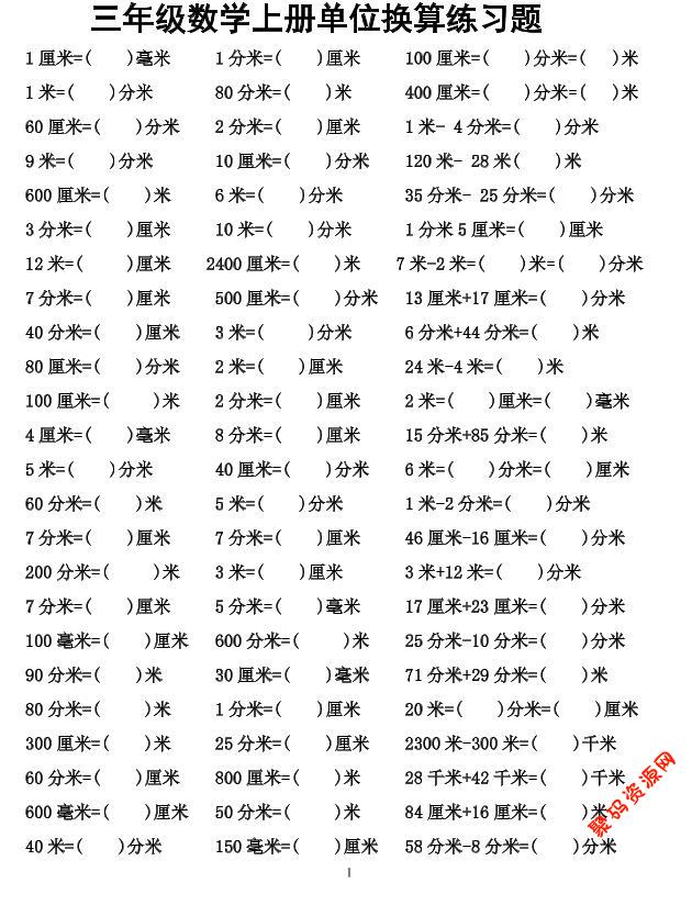 聚码网 三年级 三年级上数学单位换算专项练习 http://www.appstore168.com/118269.html