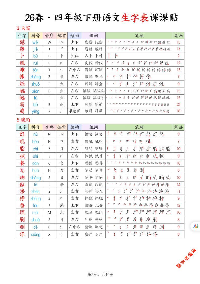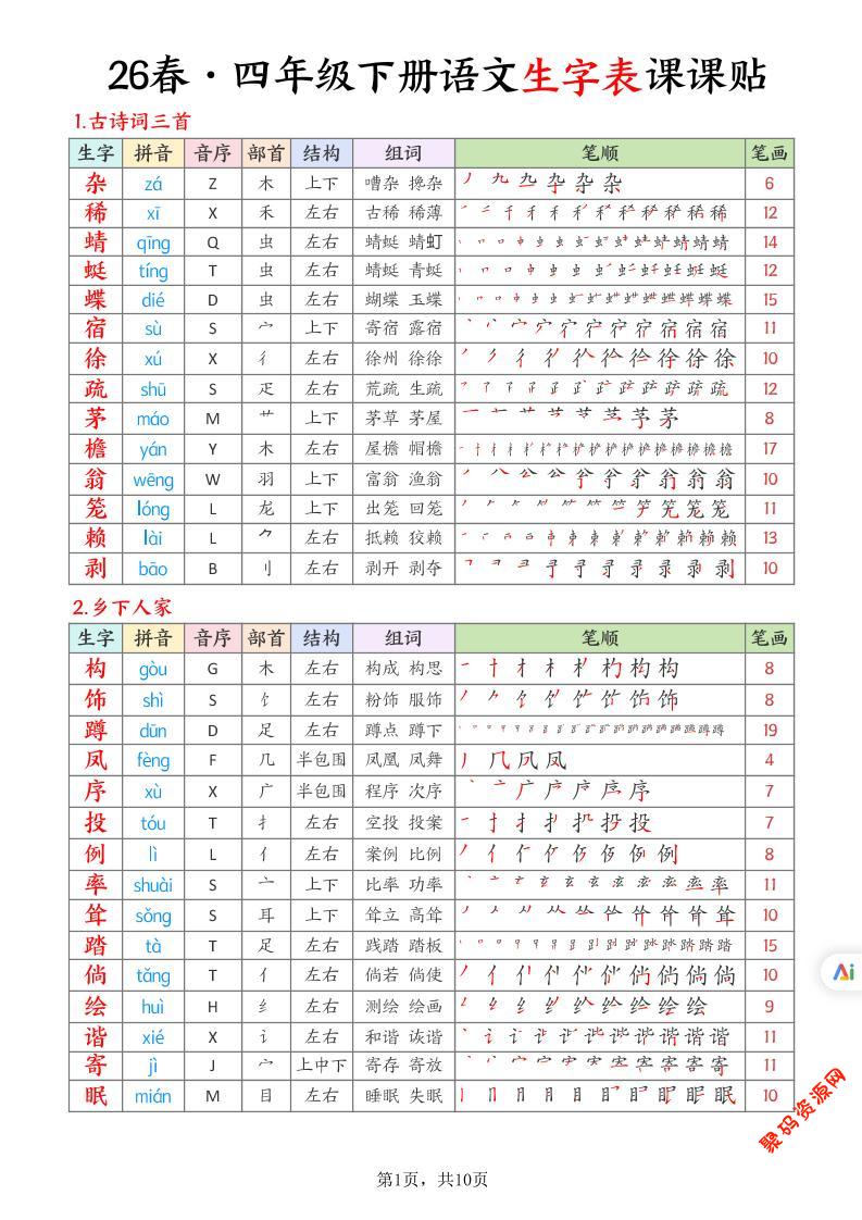 聚码网 四年级 26春四下语文生字表课课贴10页 http://www.appstore168.com/118272.html