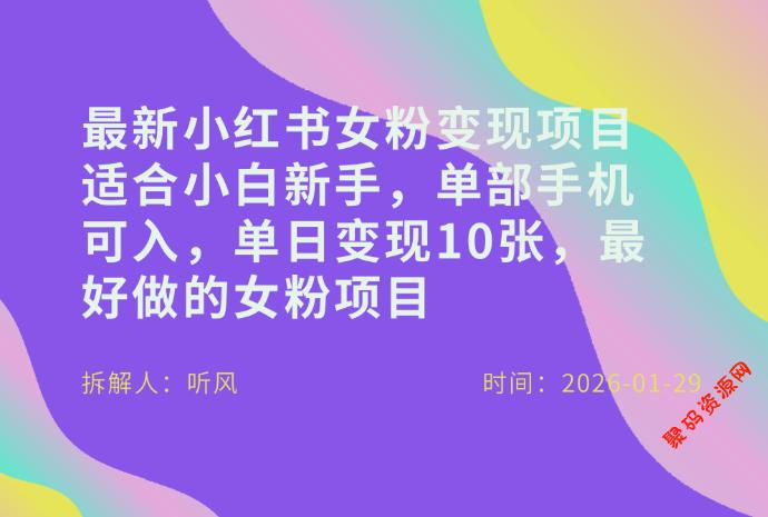 聚码网 网赚项目 小红书女粉最新变现项目,适合小白新手,单部手机可入,单日变现多张 http://www.appstore168.com/118290.html