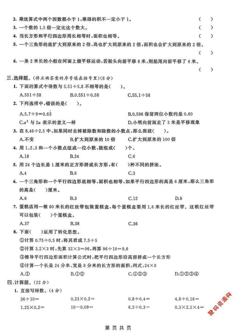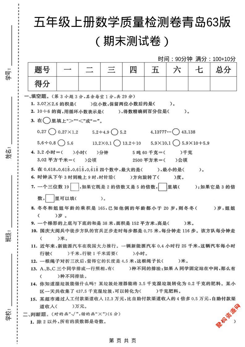 聚码网 五年级 五年级上数学期末质量检测卷5《青岛63版》 http://www.appstore168.com/118397.html