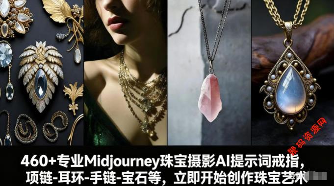 460+专业Midjourney珠宝摄影AI提示词戒指,项链-耳环-手链-宝石等,立即开始创作珠宝艺术