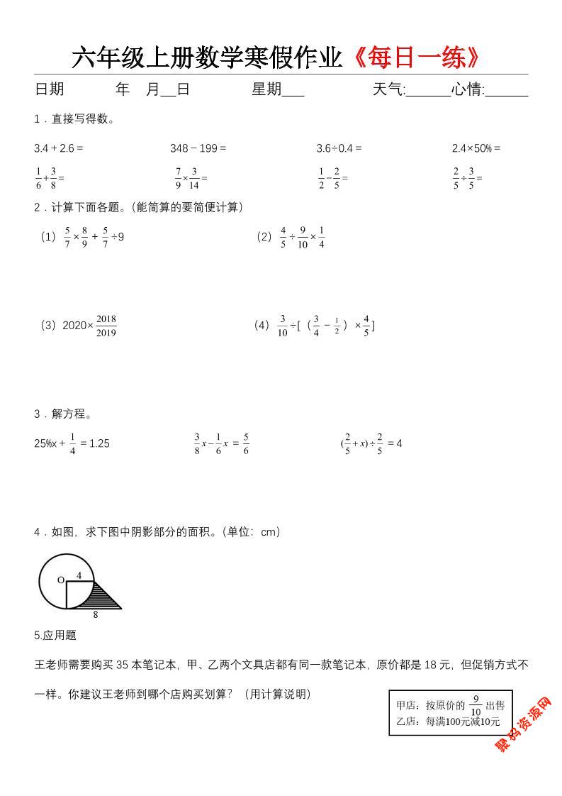 聚码网 六年级 六年级(上)数学寒假作业《每日一练》 http://www.appstore168.com/118613.html
