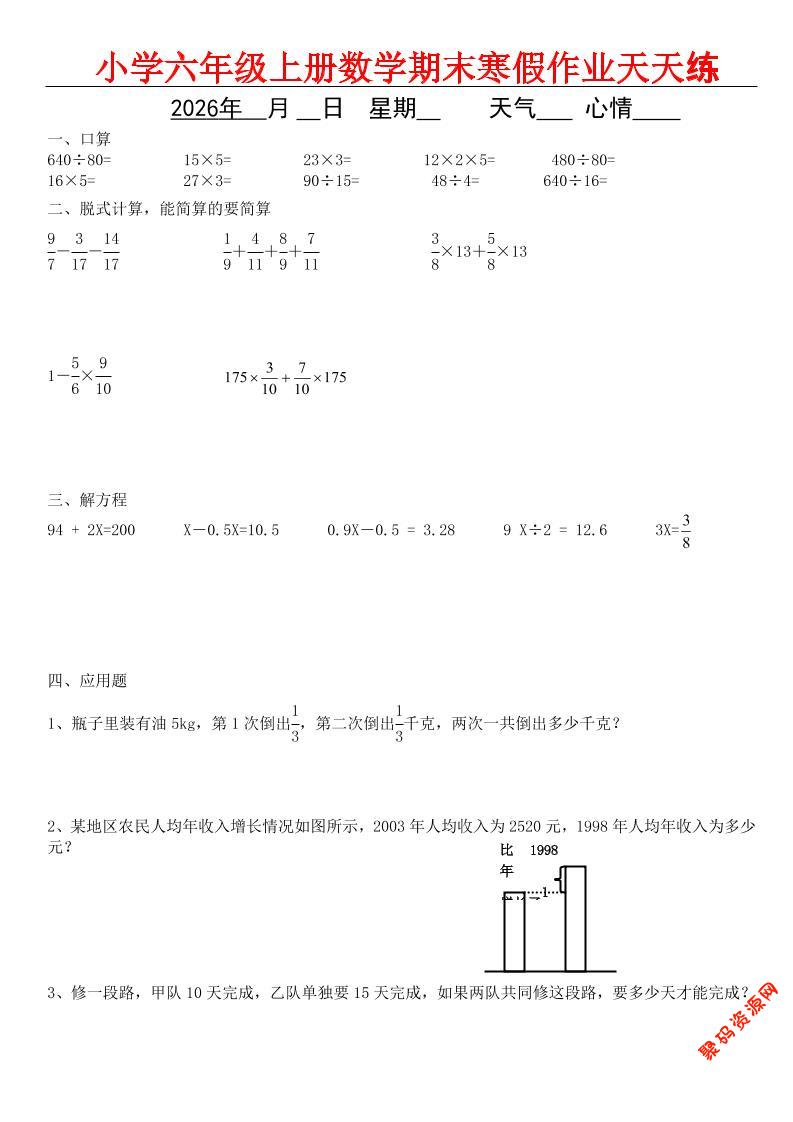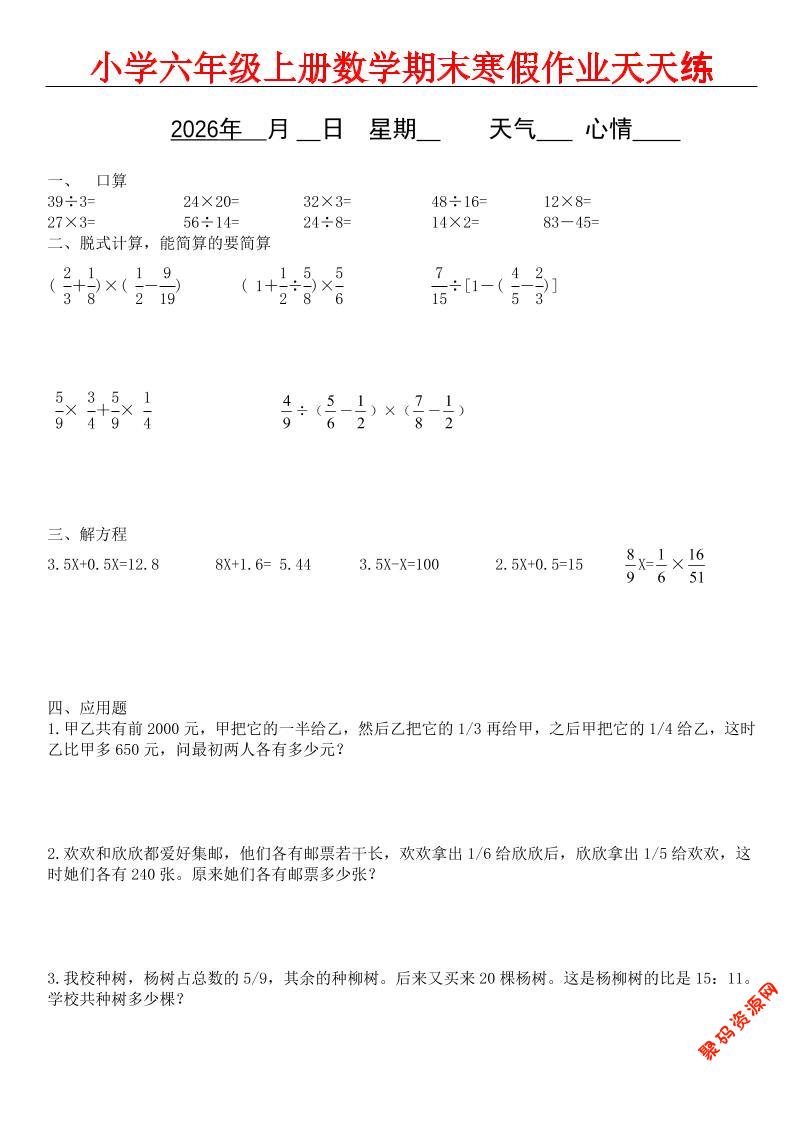 - 六年级语文下寒假作业每日一练30天 2026-02-17
