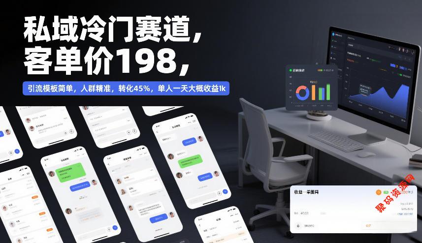 聚码网 私域引流 私域冷门赛道,客单价198,引流模板简单,人群精准,转化45%,单人一天大概收益1k http://www.appstore168.com/118665.html