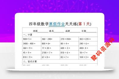 聚码网 四年级 四年级上数学寒假作业每日一练 http://www.appstore168.com/118820.html