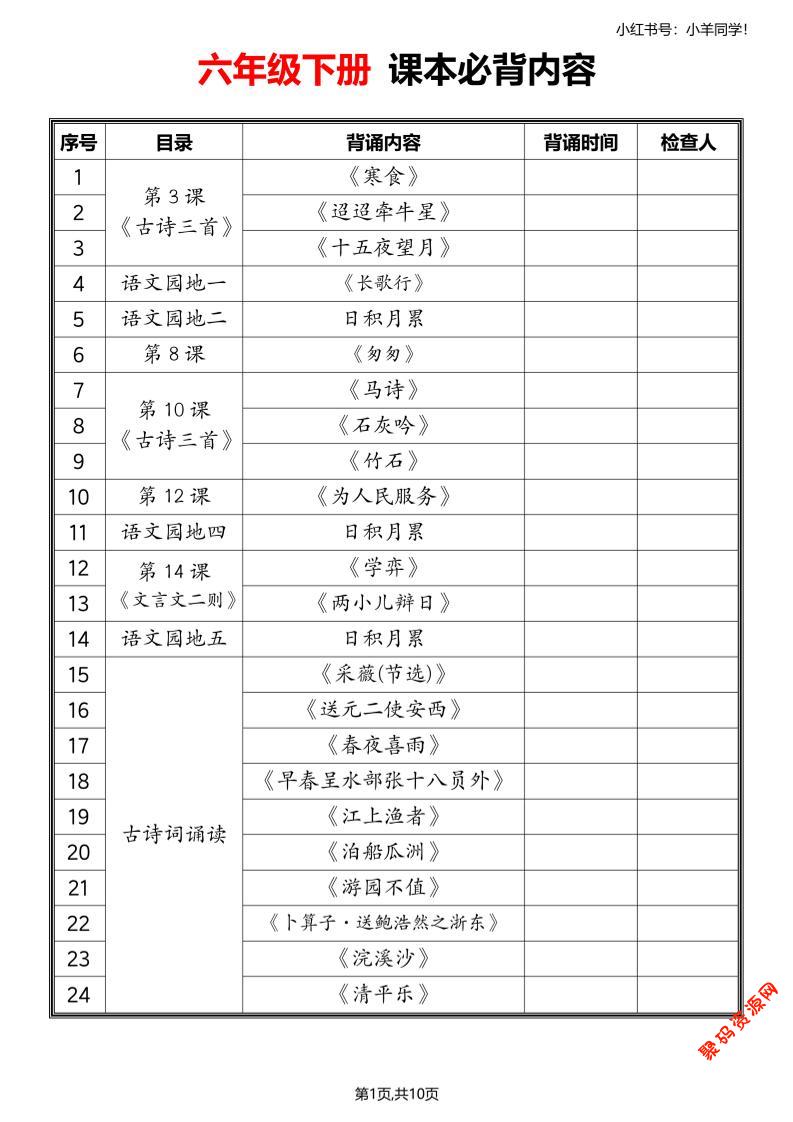 - 六下语文每日背诵 2026-02-25