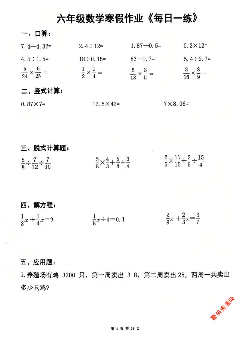 聚码网 六年级 六年级上数学寒假作业每日一练 http://www.appstore168.com/118838.html