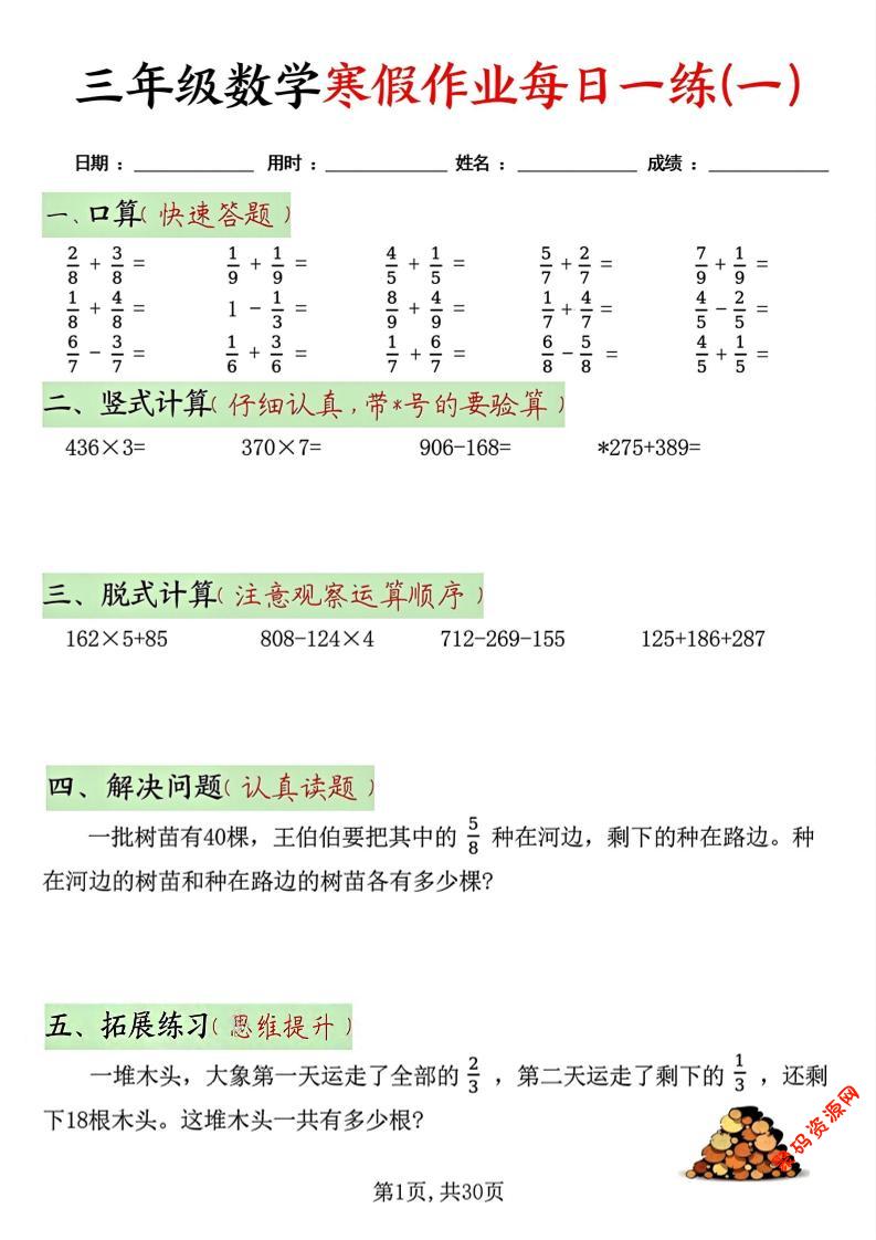 聚码网 三年级 三年级上数学寒假作业每日一练30天 http://www.appstore168.com/118855.html