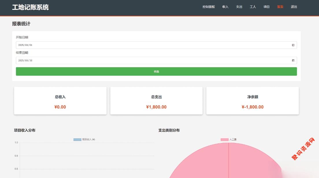 实时生成「项目收益分析」「工人成本占比」「支出类别排行」等关键数据