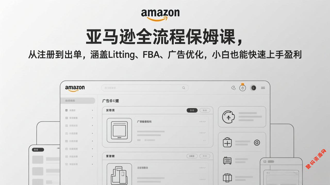本课程《亚马逊保姆级全流程实操教程》为跨境新手提供从零到一的系统性入门指导。课程以亚马逊卖家后台操作流程为主线,全方位覆盖开店注册、Listing优化上架、FBM/FBA发货实操、广告投放与优化、品牌备案等核心运营环节。内容注重实战细节与合规安全,包括类目审核规避、图片视频制作标准、文案撰写技巧、货件创建与分仓策略等,旨在帮助学员快速掌握平台规则,建立标准运营流程,安全高效地启动并管理亚马逊店铺,迈出跨境电商成功第一步。