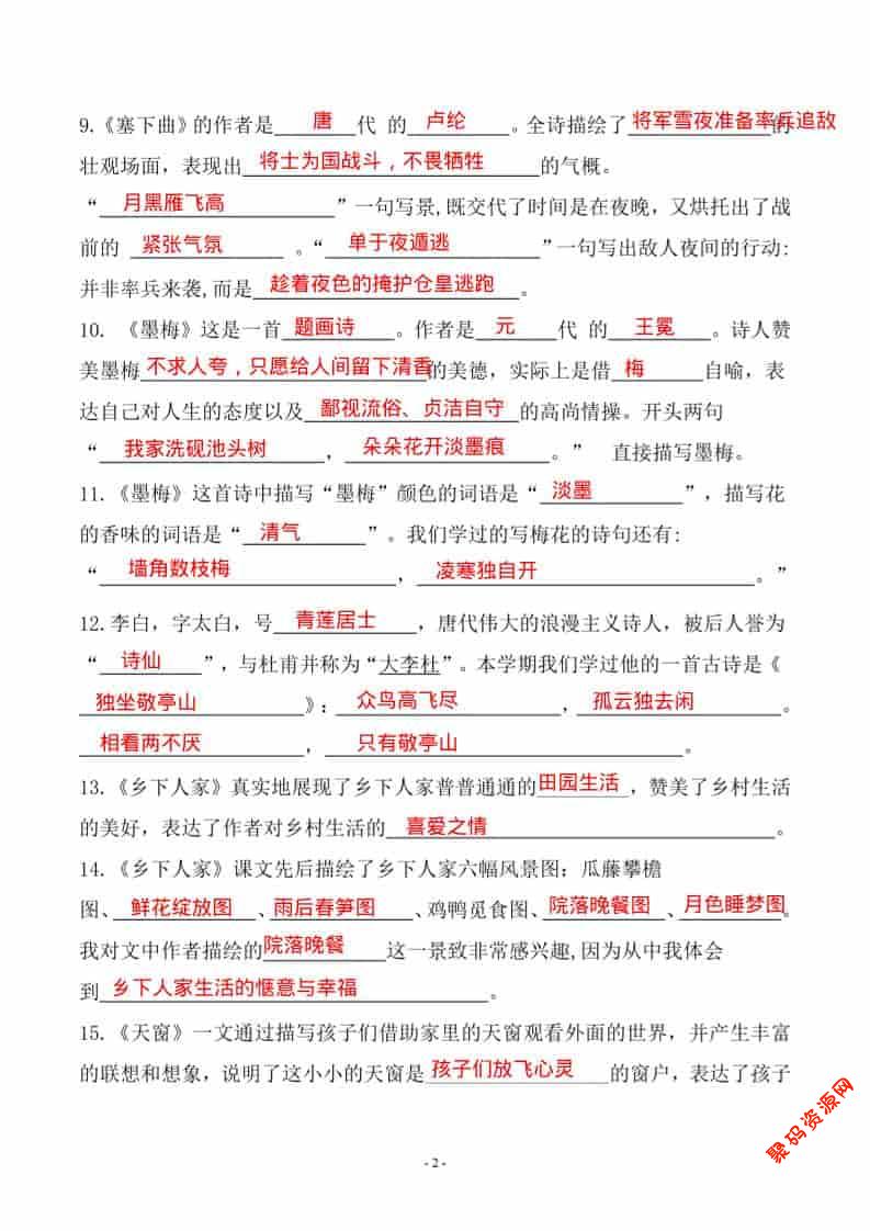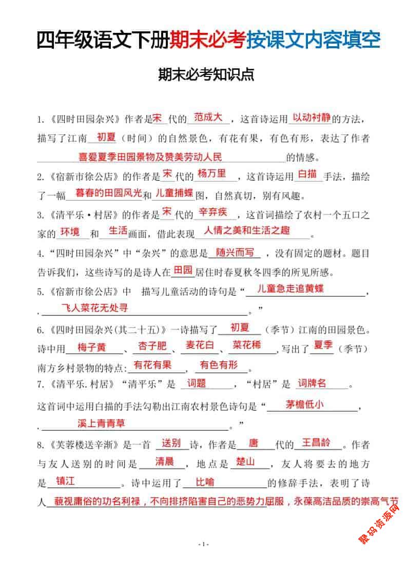 聚码网 四年级 四年级下语文期末常考易考课文古诗词填空 http://www.appstore168.com/119192.html