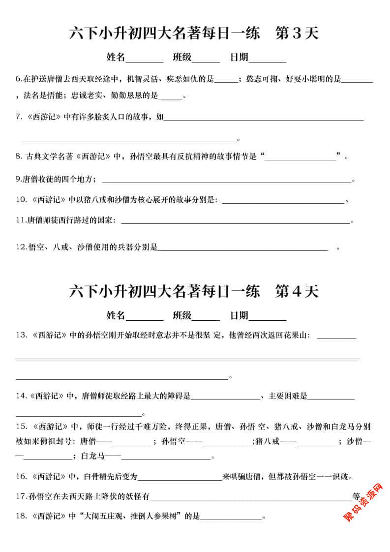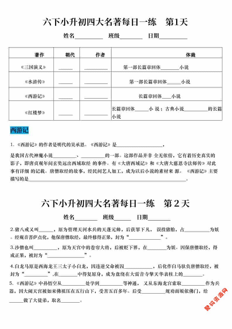 聚码网 六年级 六年级下语文小升初语文四大名著每日一练 http://www.appstore168.com/119207.html