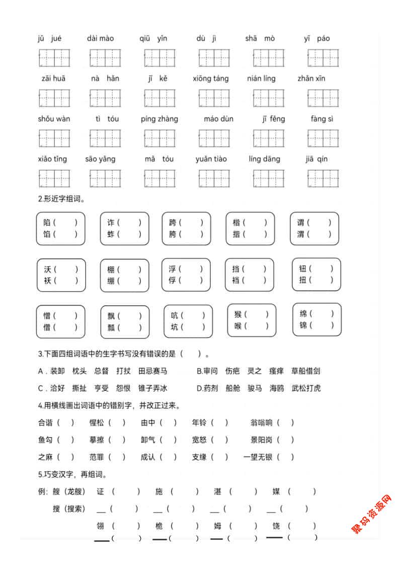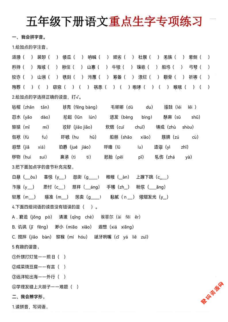 聚码网 五年级 五年级下语文期末生字专项练习 http://www.appstore168.com/119221.html