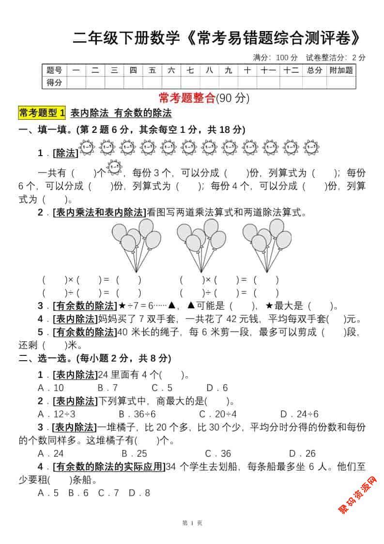聚码网 二年级 二年级下数学常考易错题综合测评卷 http://www.appstore168.com/119258.html