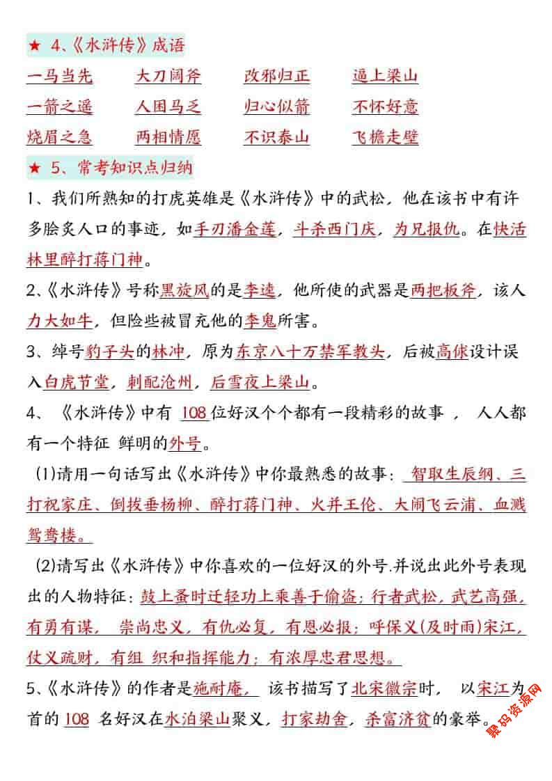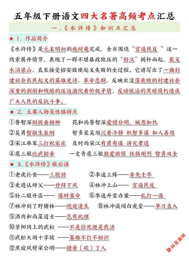 聚码网 五年级 五年级下语文四大名著高频考点 http://www.appstore168.com/119414.html