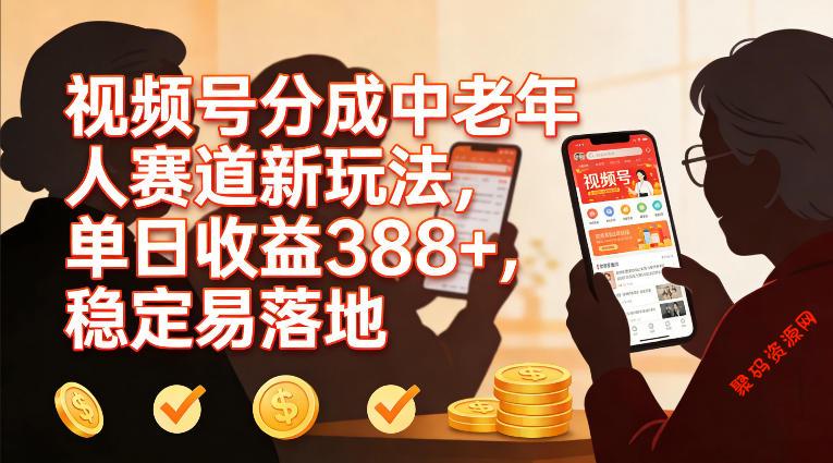 聚码网 网赚项目 视频号分成中老年人赛道新玩法,单日收益388,稳定易落地 http://www.appstore168.com/119493.html