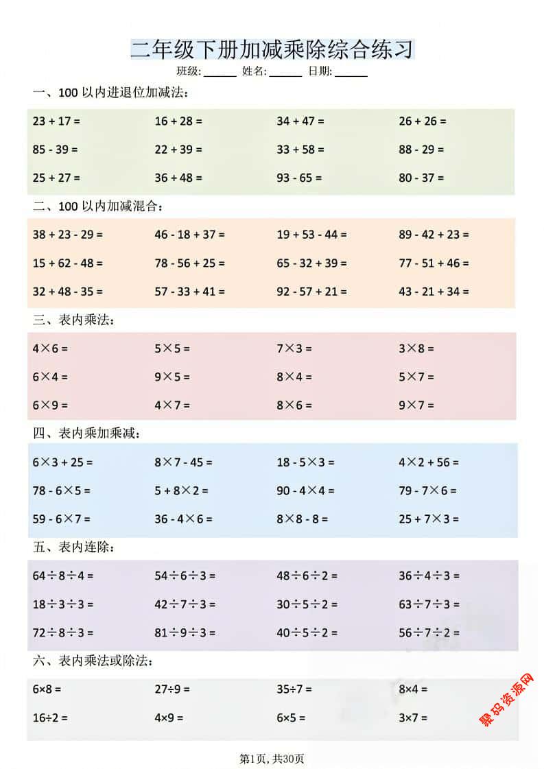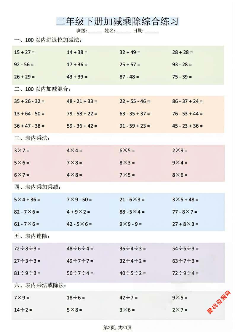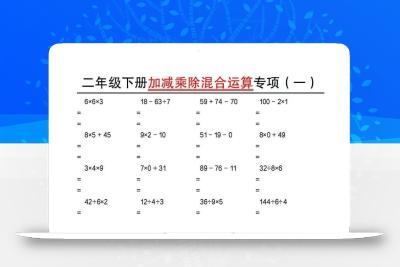 聚码网 二年级 二年级下数学加减乘除综合练习 http://www.appstore168.com/119850.html