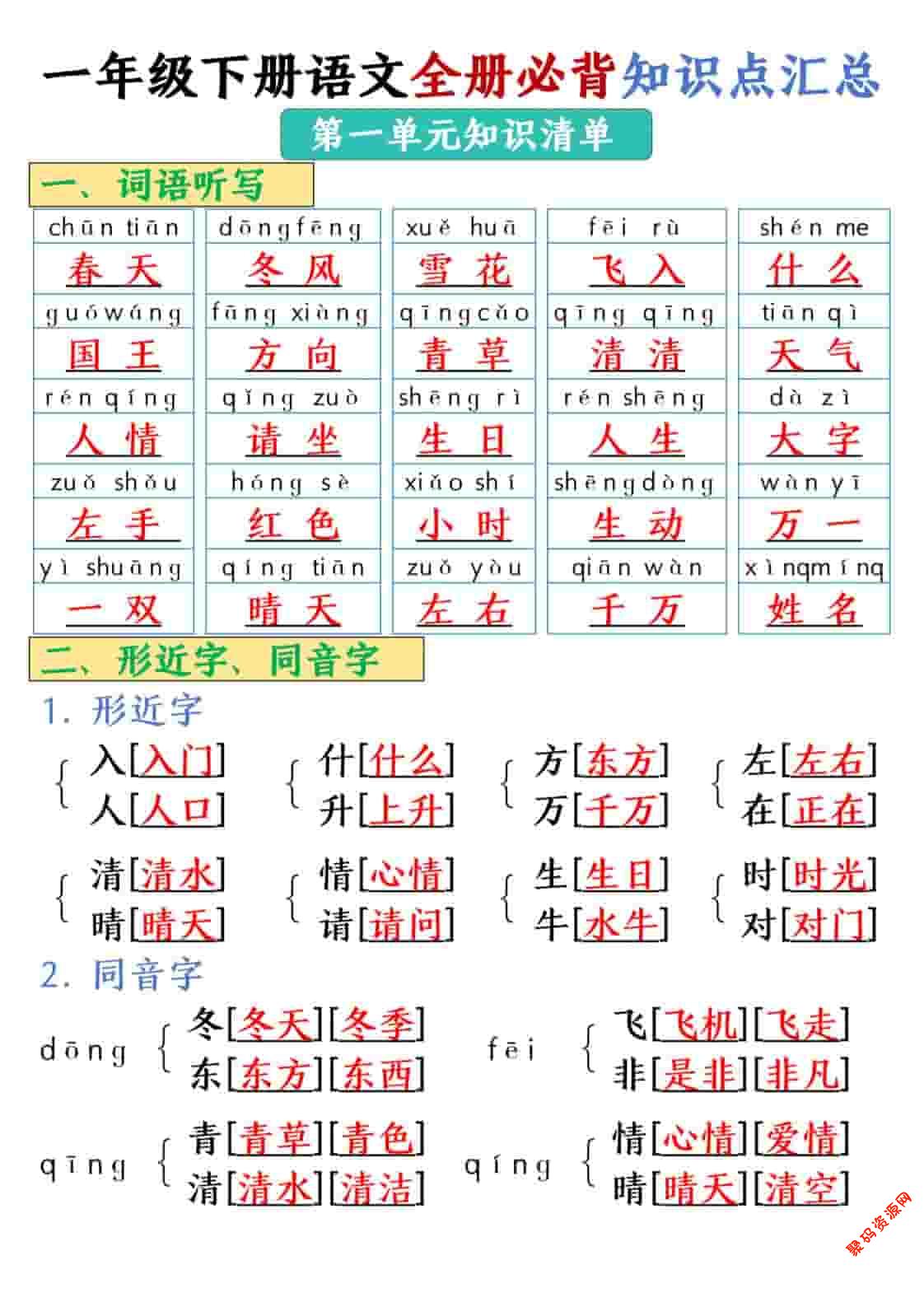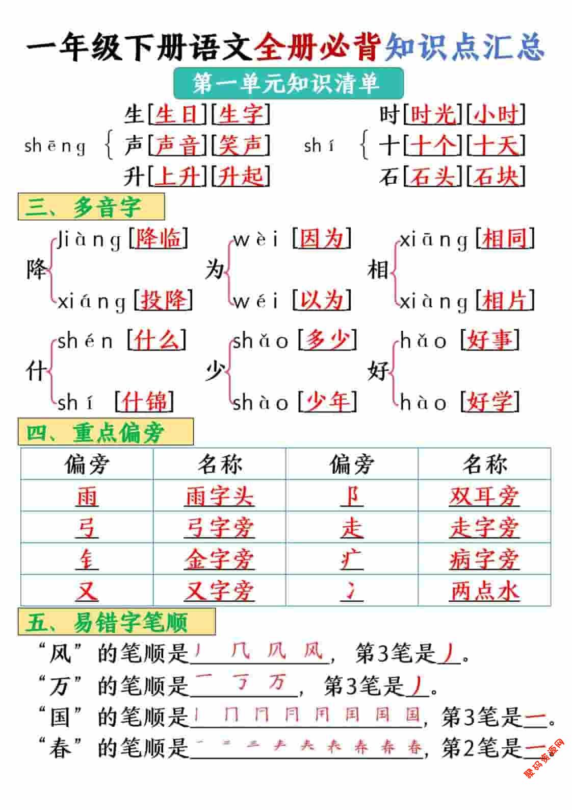 聚码网 一年级 一年级下语文全册必背知识点汇总【共26页】 http://www.appstore168.com/119868.html