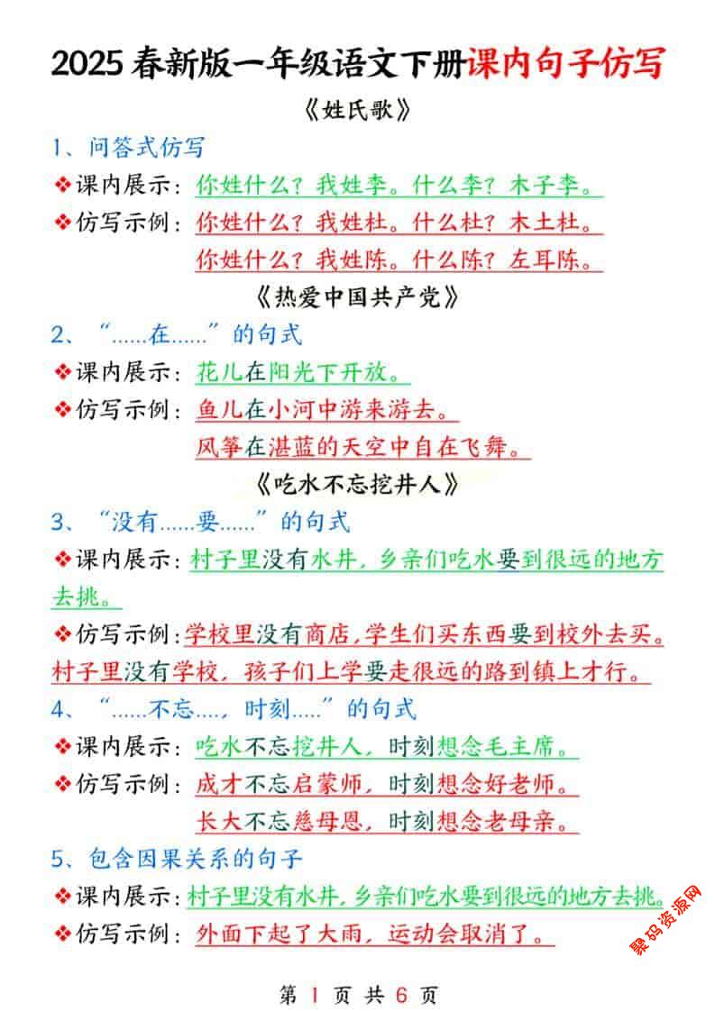 - 一年级下语文常考必备句子专项练习 2026-02-25