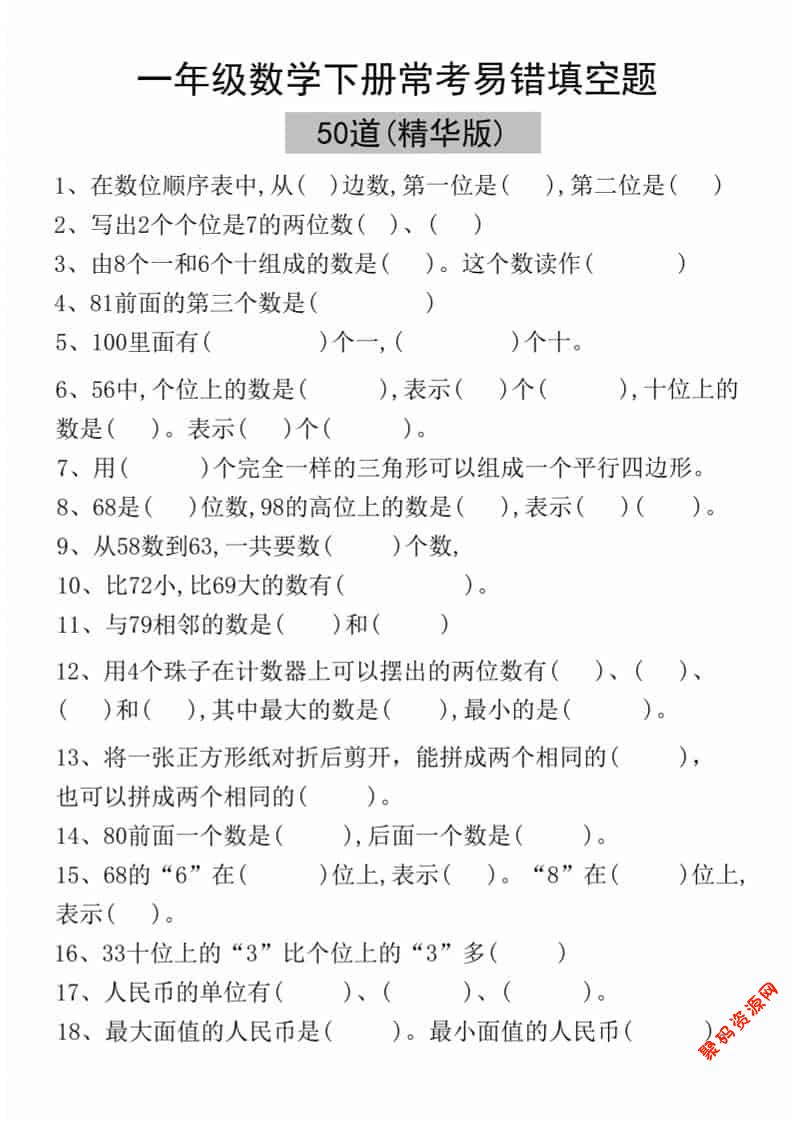 聚码网 一年级 一年级下语文易错填空50道(精华版) http://www.appstore168.com/120057.html