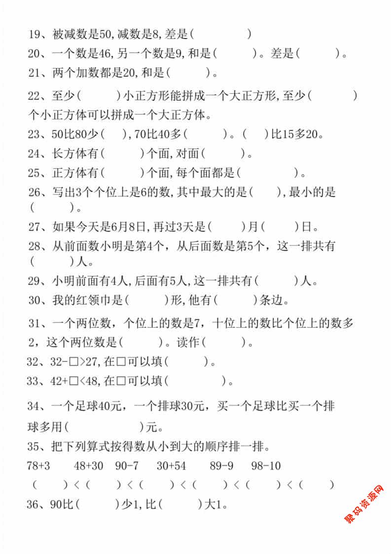 - 一年级下数学20以内加减法综合卷 2026-02-24