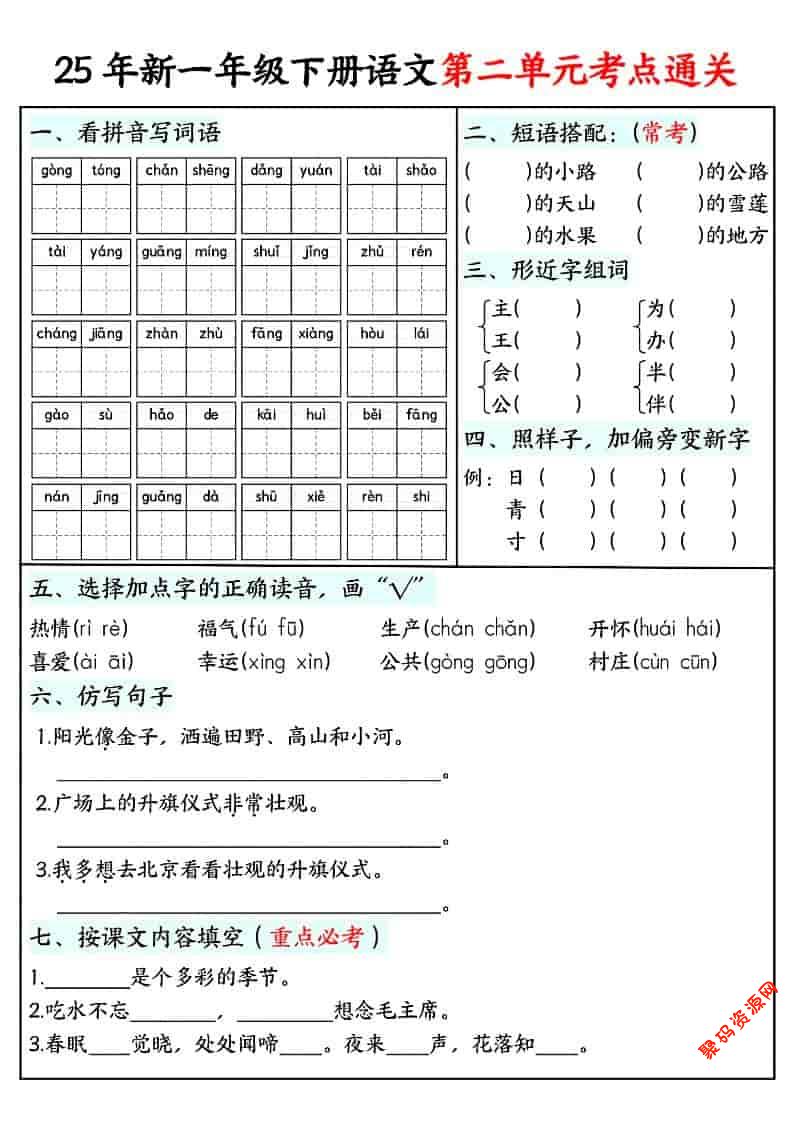 - 一年级下语文【识字表+写字表】专项练 2026-02-25