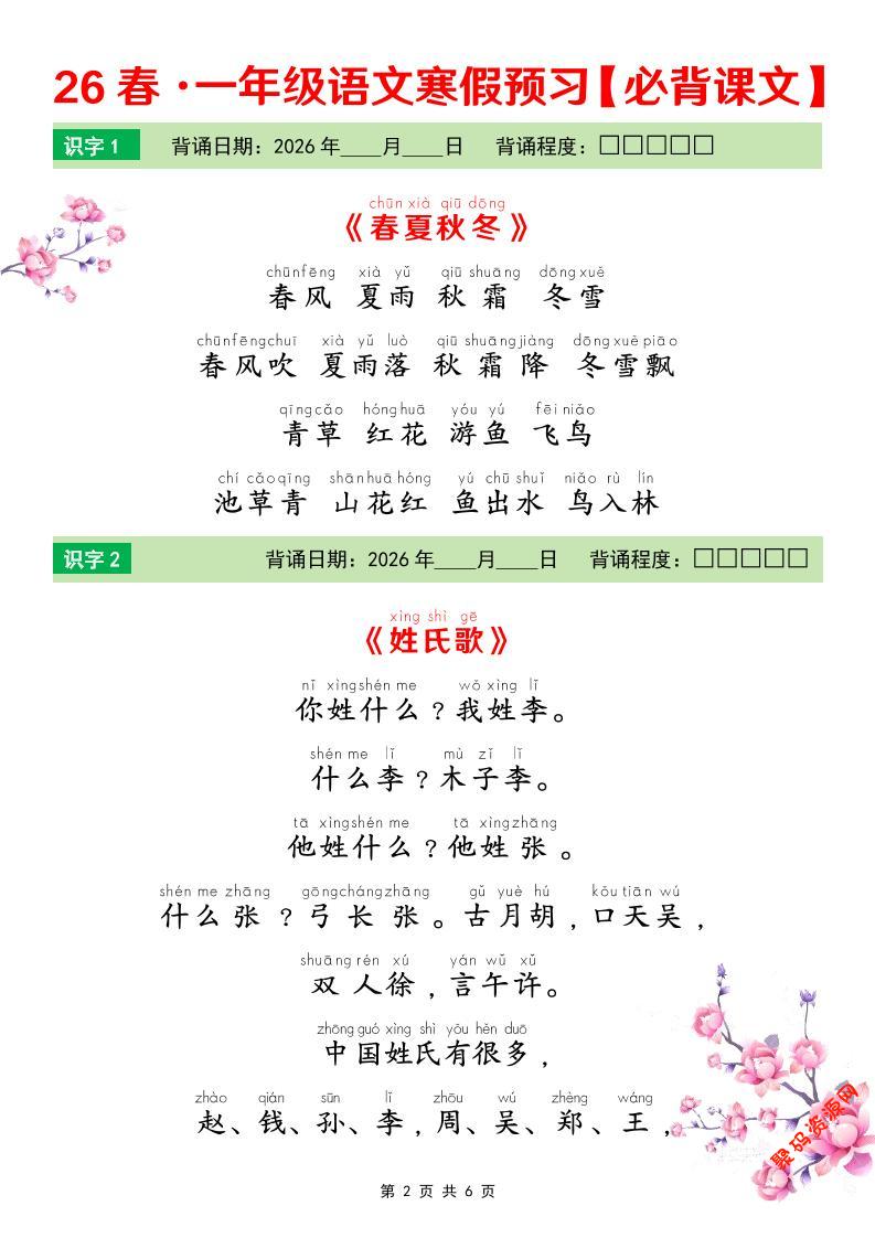 聚码网 一年级 一年级下语文26春寒假预习必背课文 http://www.appstore168.com/120222.html
