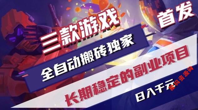 三款游戏全自动搬砖独家首发,日入1K,全自动无需人工操作,长期稳定的副业项目【揭秘】