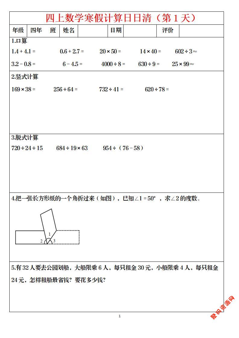 聚码网 四年级 四年级数学下寒假日日清计算(共30套) http://www.appstore168.com/120513.html